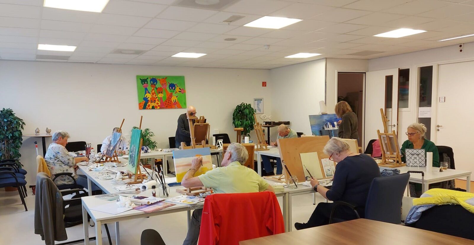 Wekelijks komen de 9 deelnemers bij elkaar in het schilderatelier om te schilderen aan hun eigen werken. Er wordt voornamelijk met olieverf geschilderd. De onderwerpen zijn zeer divers, zoals portretten, landschappen, dieren, stillevens, stadsbeelden, actuele onderwerpen, abstract, etc.